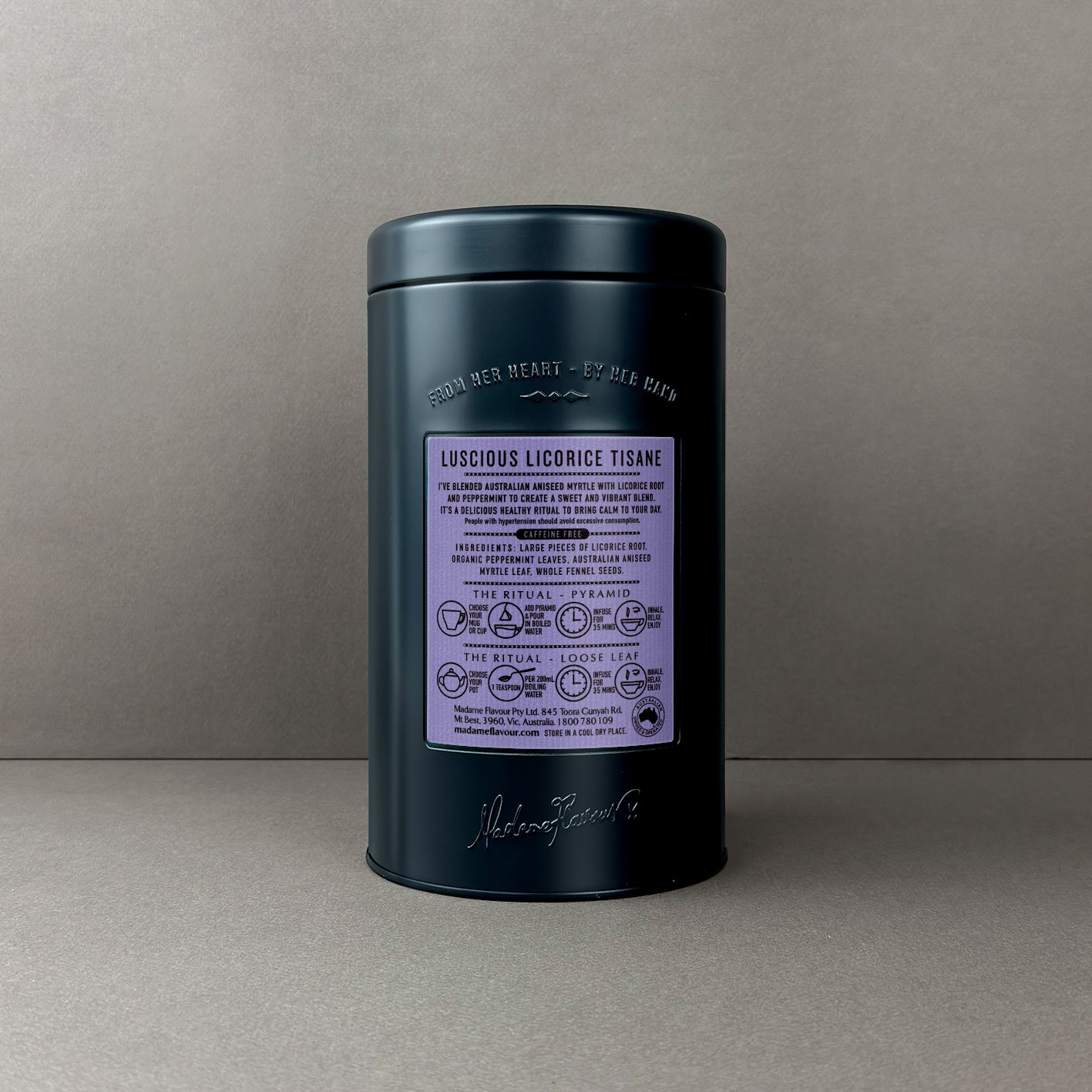 Inside the Luscious Licorice blend you can easily spot the large chunks of licorice root, which is sourced from friends along the lush green hills of Sri Lanka. This delicious blend is actually known to be a favourite of people who don’t usually enjoy eating licorice. The lesser-known cousin of lemon myrtle, aniseed myrtle is my favourite of all our native flavours. It is just so unexpected that a tree would have such delicate, perfumed leaves so naturally. When I first discovered this herb, I was determined to use it in a blend, and when I started exploring licorice root, realised that it was the perfect partner. The aniseed myrtle in your Luscious Licorice blend comes direct from Gary and Melissa in Lismore, who specialise in growing lemon and aniseed myrtle. A touch of organic peppermint adds a subtle thrill to this delicate, naturally sweet blend.